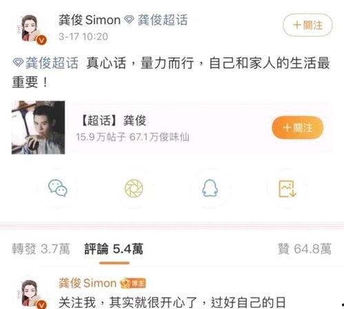 最近娱乐圈可是炸开了锅,咱们的人气小生龚俊又来给大家送福利啦!这不,他的最新爆料微博号一经发布,瞬间吸引了无数粉丝的目光。今天,就让我带你一起深入挖掘龚俊的微博世界,看看这位明星私下里都有哪些新鲜事儿吧!